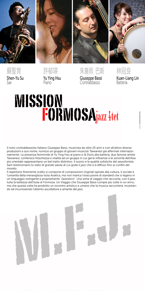 Tornerà in Italia il quartetto Mission Formosa, formato dal nostro contrabbassista Giuseppe Bassi e dai 3 musicisti più rappresentativi del nuovo jazz made in Taiwan.