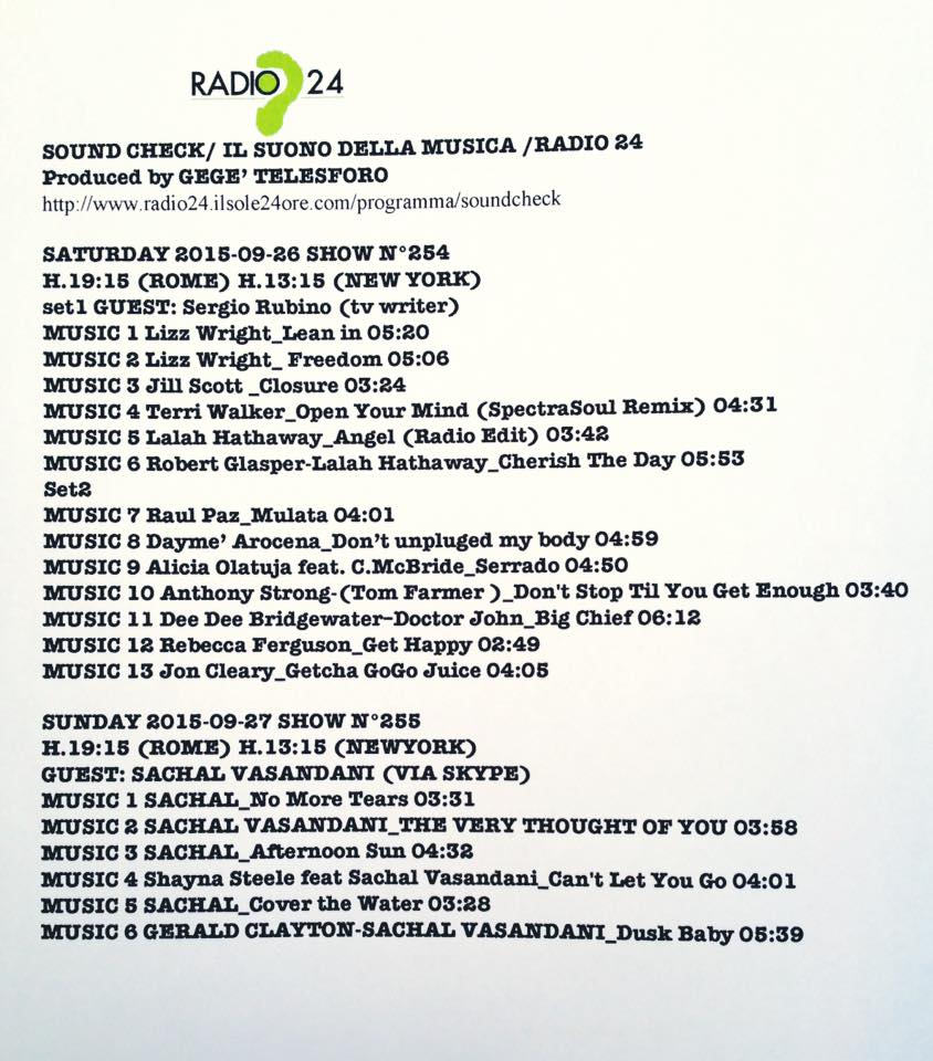 SoundCheck Radio24. Airplay del 26 e 27 settembre, ore 19:15.