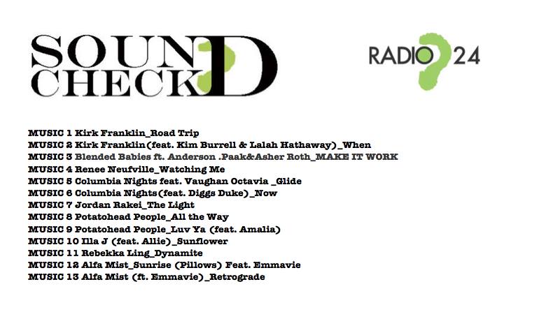 Soundcheck Radio24: airplay di sabato 23 gennaio ore 19:15.