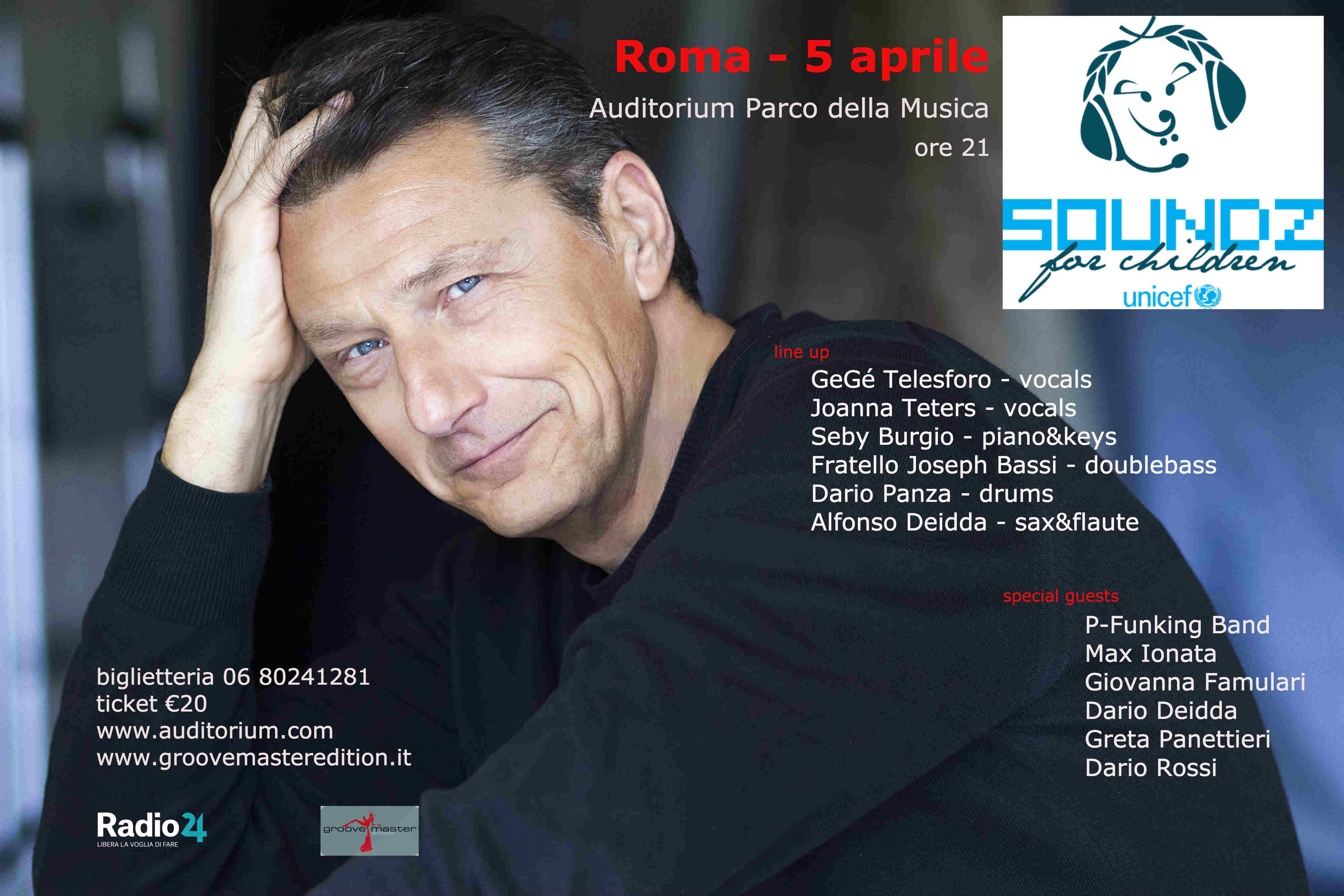 Tanti ospiti saranno on stage con GeGé Telesforo e la sua band al concerto “SoundzForChildren” del 5 aprile prossimo all’auditorium Parco della Musica di Roma.