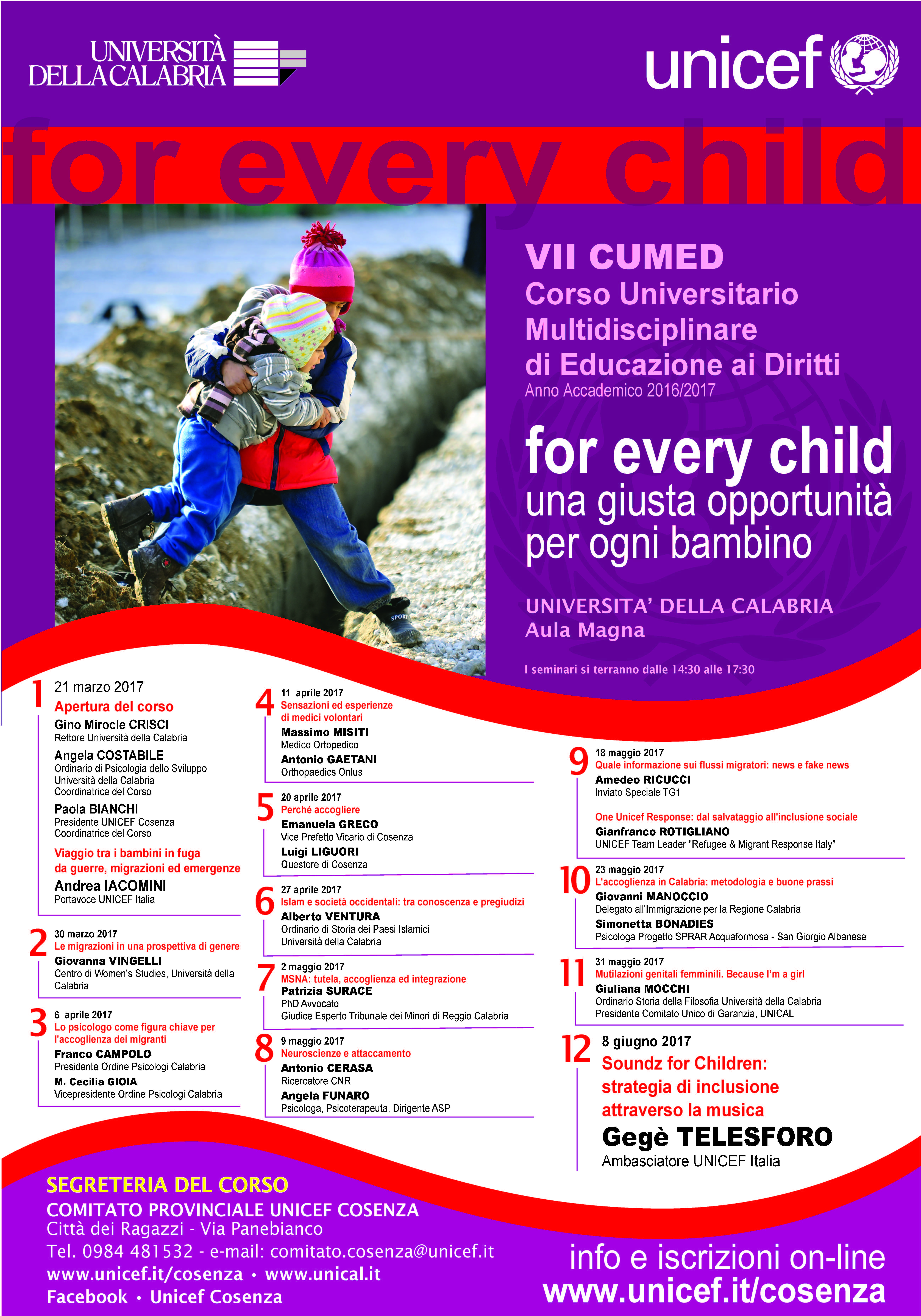 UNICAL ed UNICEF propongono il VII CUMED – Corso Multidisciplinare di Educazione ai Diritti – che si compone di un ciclo di 12 seminari.